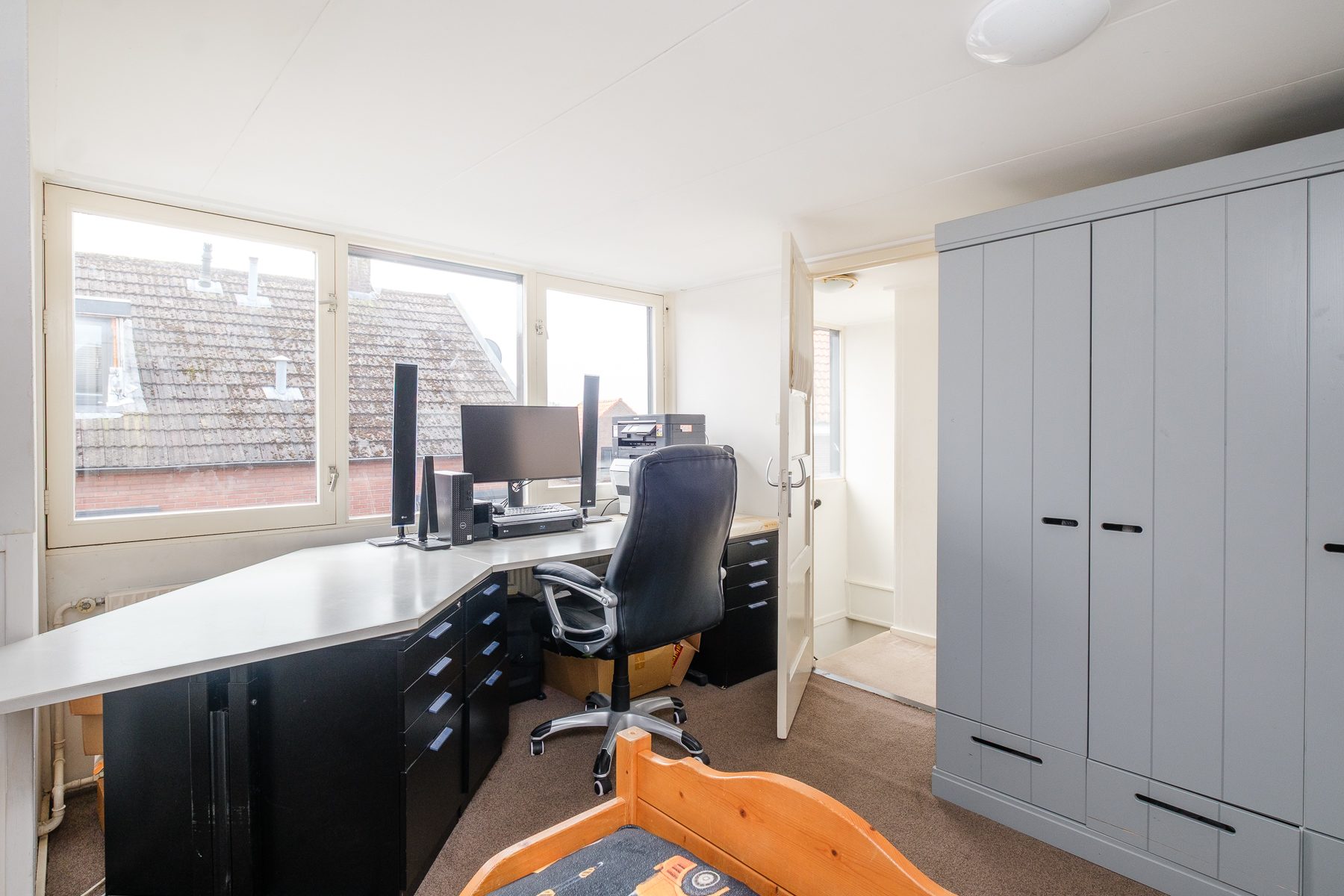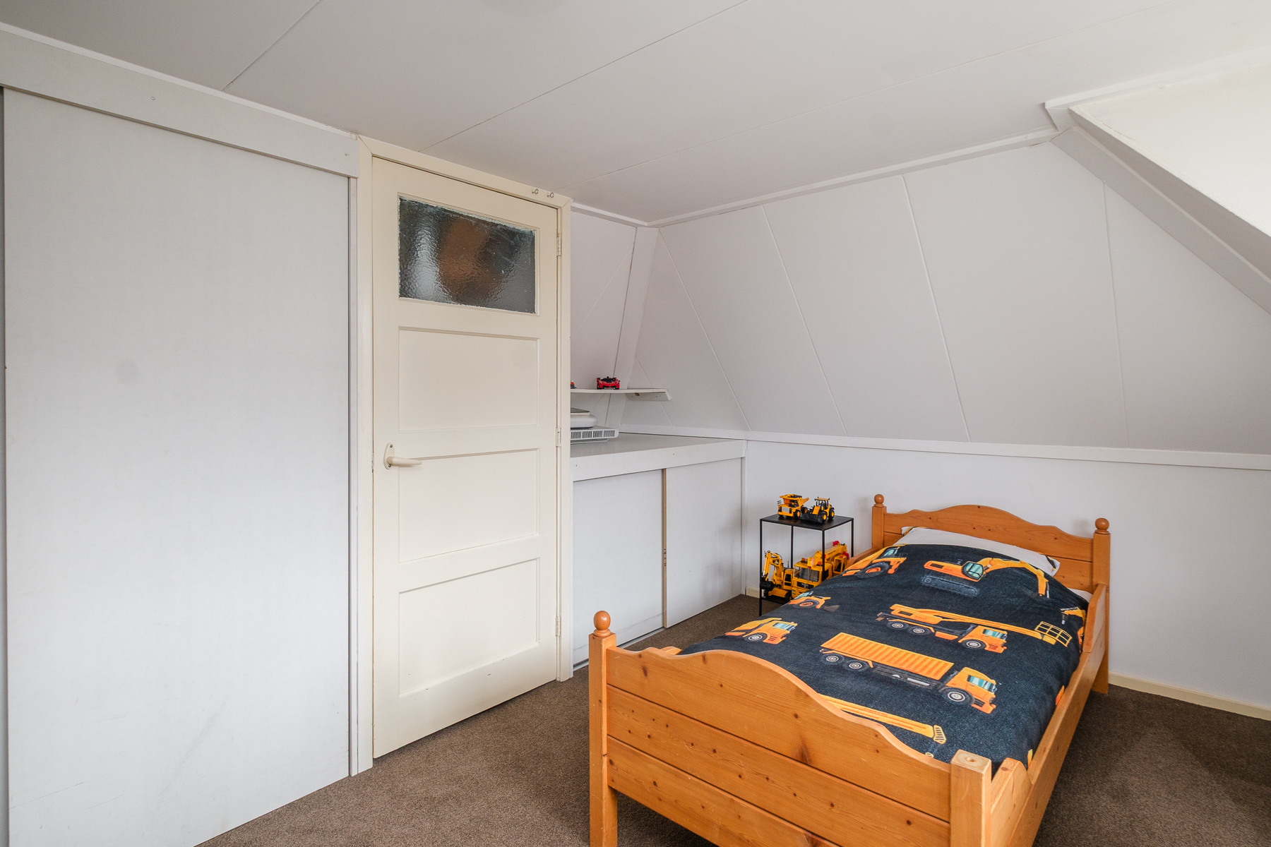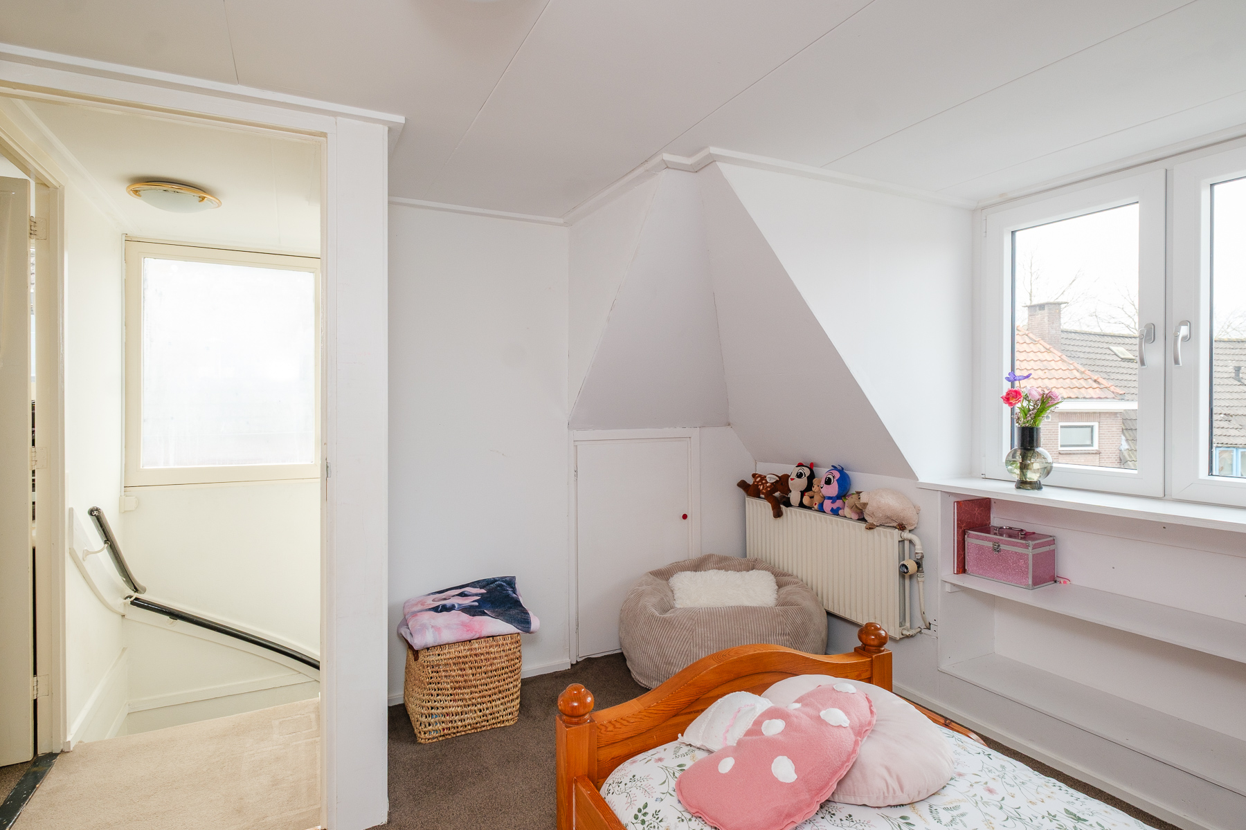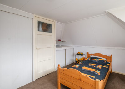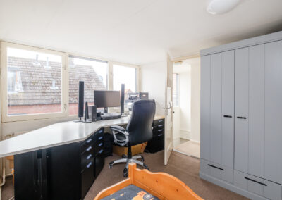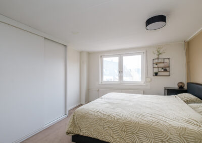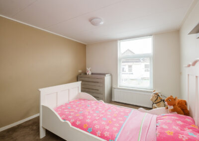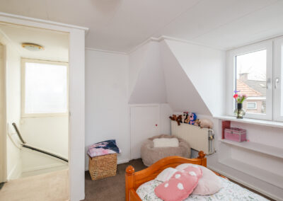 De tweede verdieping biedt nog eens twee ruime slaapkamers, beide voorzien van een dakkapel. De grote dakkapel aan de zijkant van de woning zorgt hier voor extra licht en ruimte. Op de achterste slaapkamer bevindt zich tevens een extra kast en de cv-opstelling.