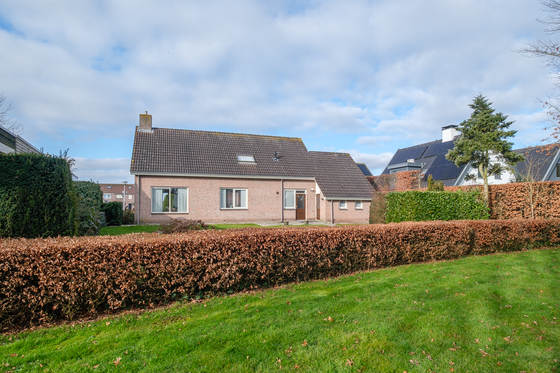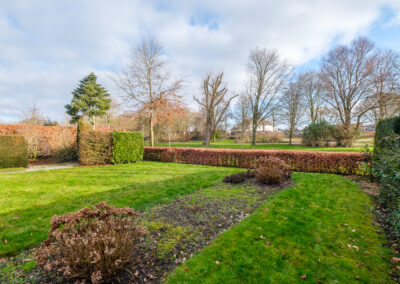 De achtertuin van ca. 300 m² ligt op het oosten en grenst direct aan het stadspark. Hier ervaart u optimale privacy en een unieke combinatie van rust, ruimte en natuur. Een heerlijke plek om in alle seizoenen te genieten van het uitzicht op groen en water.