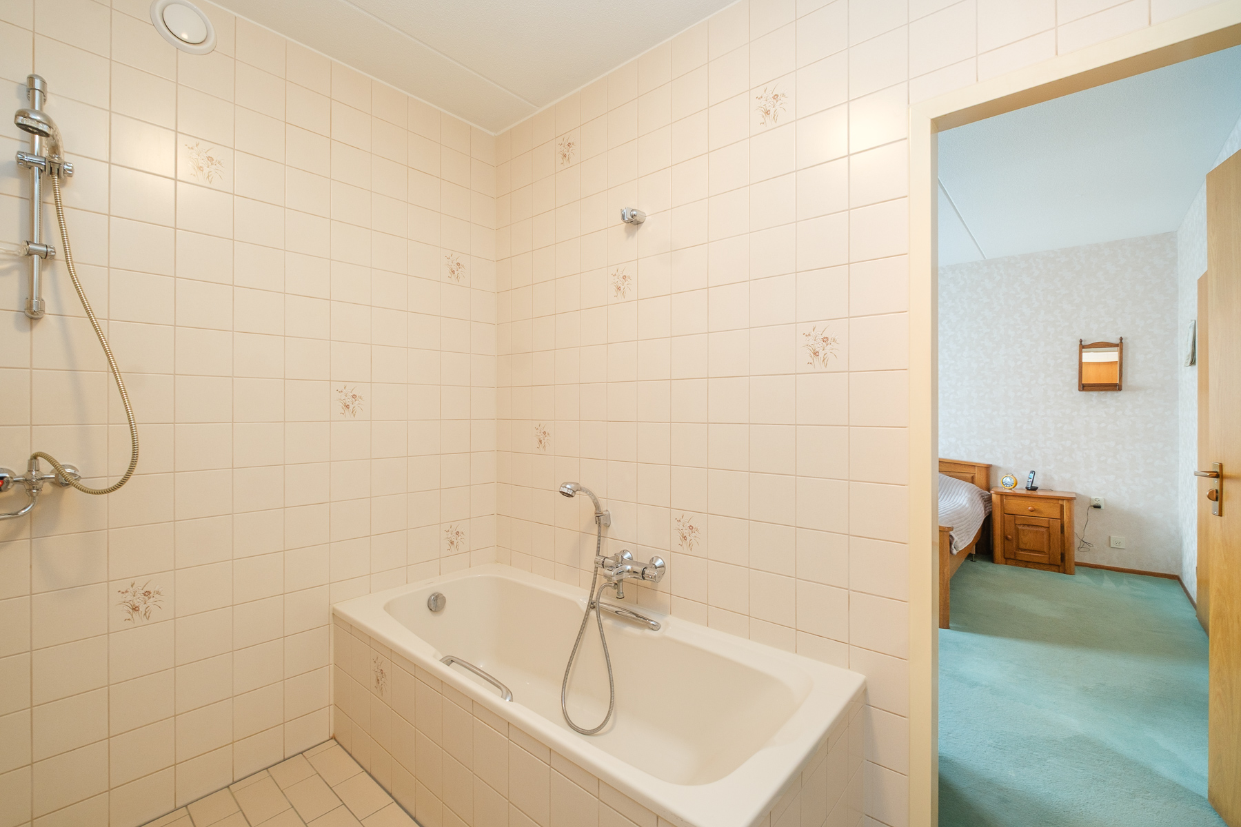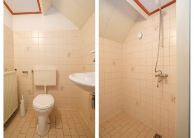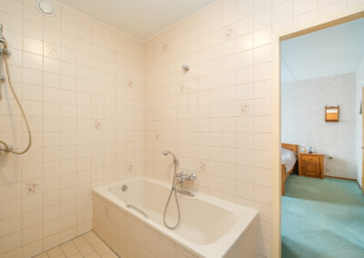 Wat deze woning extra aantrekkelijk maakt, is het volledige woonprogramma op de begane grond. De ruime slaapkamer met aangrenzende badkamer (voorzien van een ligbad, douche en wastafel in lichte kleurstelling) maakt de woning levensloopbestendig en daarmee uitermate geschikt voor zowel senioren als grote gezinnen.